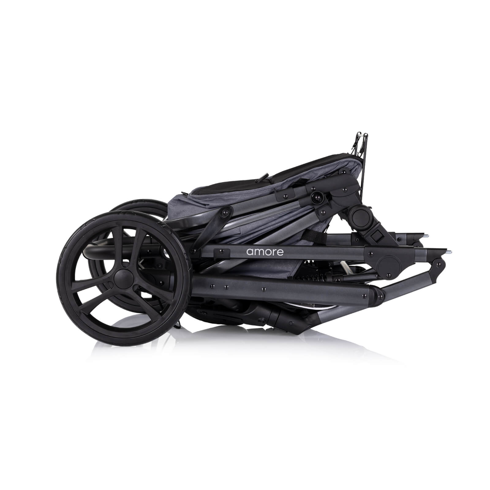 Всички колела са с амортисьори и се свалят с едно движение;