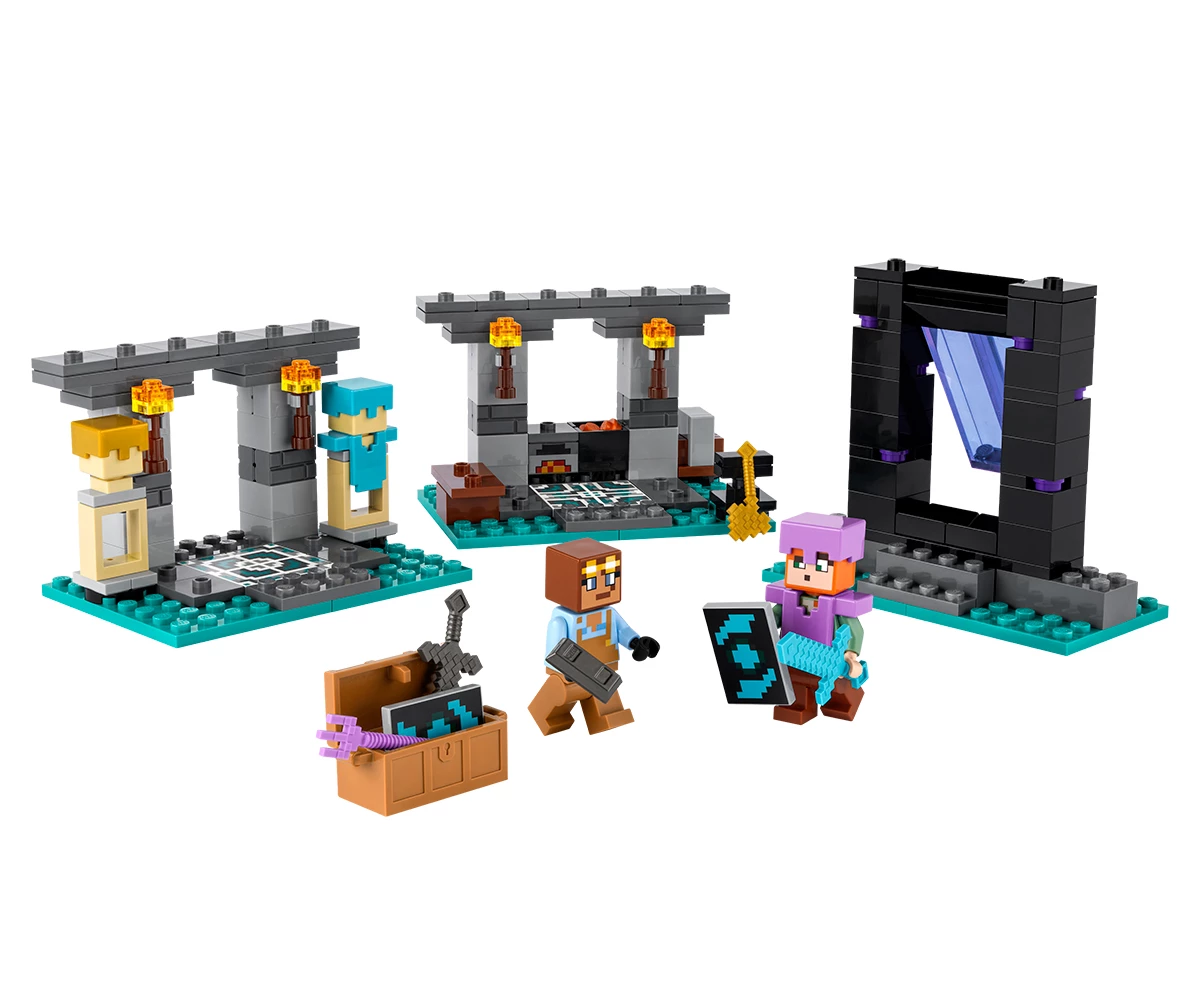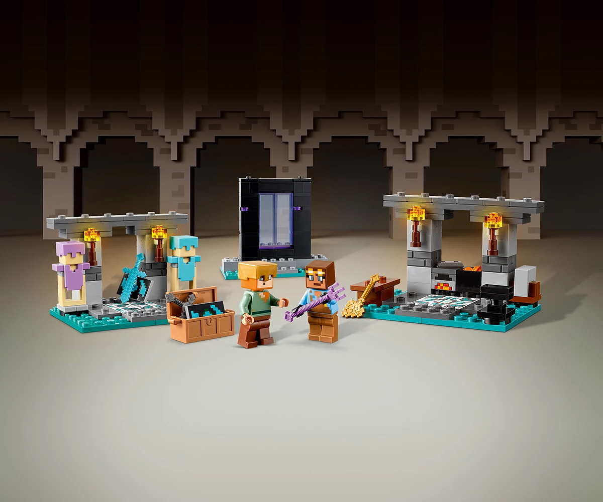 Комплектите за игра се комбинират за повече забавление – Minecraft® Оръжейната става за самостоятелна игра или може да се интегрира с други комплекти играчки LEGO® Minecraft, особено „Засада до портала към Ада (21255)“, продава се отделно;