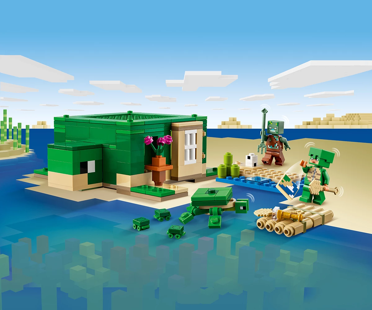 Комбинира се с други комплекти – „Къща на плажа на костенурките“ се интегрира лесно с други играчки LEGO® Minecraft® (продават се отделно) за още по-голямо забавление;