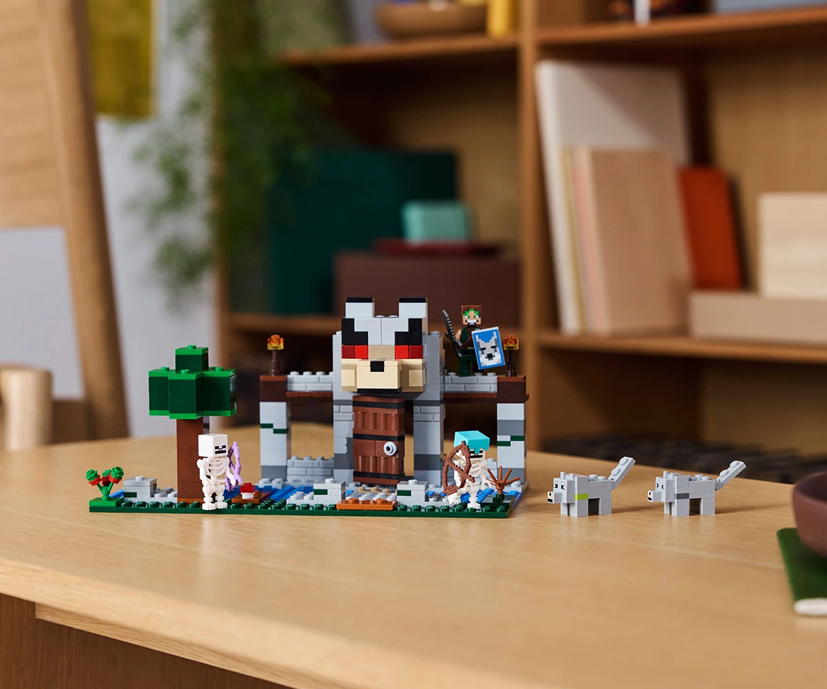 Комплект за приключения LEGO® Minecraft® за деца – момчетата и момичетата на възраст над 8 години, увлечени по Minecraft, могат да се забавляват, като изследват крепостта и гората с творческата играчка за построяване „Вълчата крепост“;