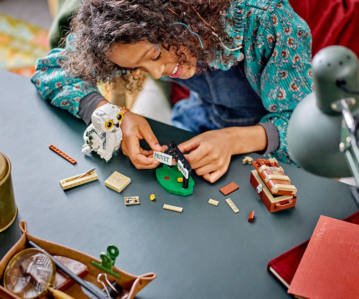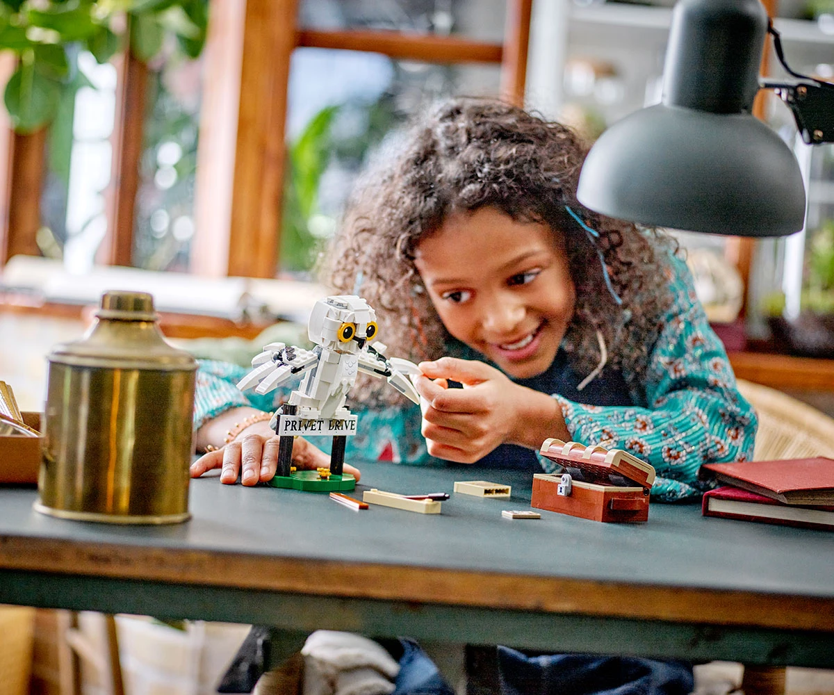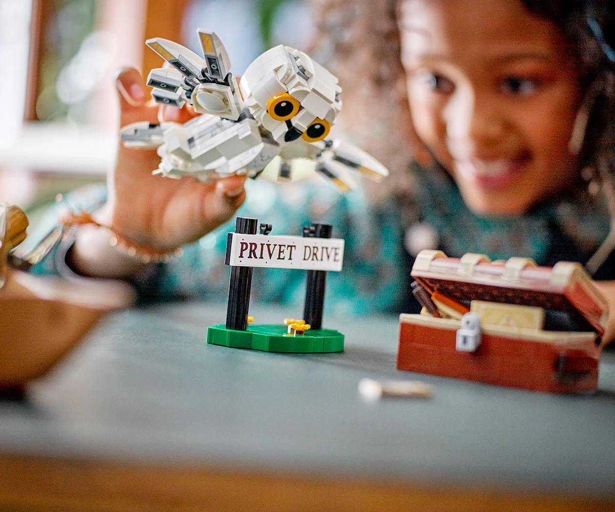 Фантастична играчка от LEGO® Harry Potter™ за деца – приветствайте децата в магьосническия свят, изпълнен с приключения за конструиране, с модела на домашния любимец на Хари Потър, снежната сова Хедуиг, на „Привит драйв“ 4;