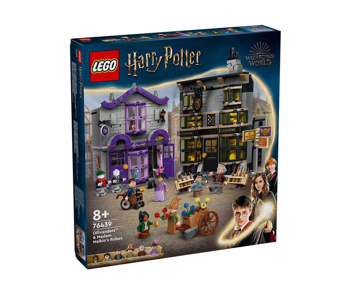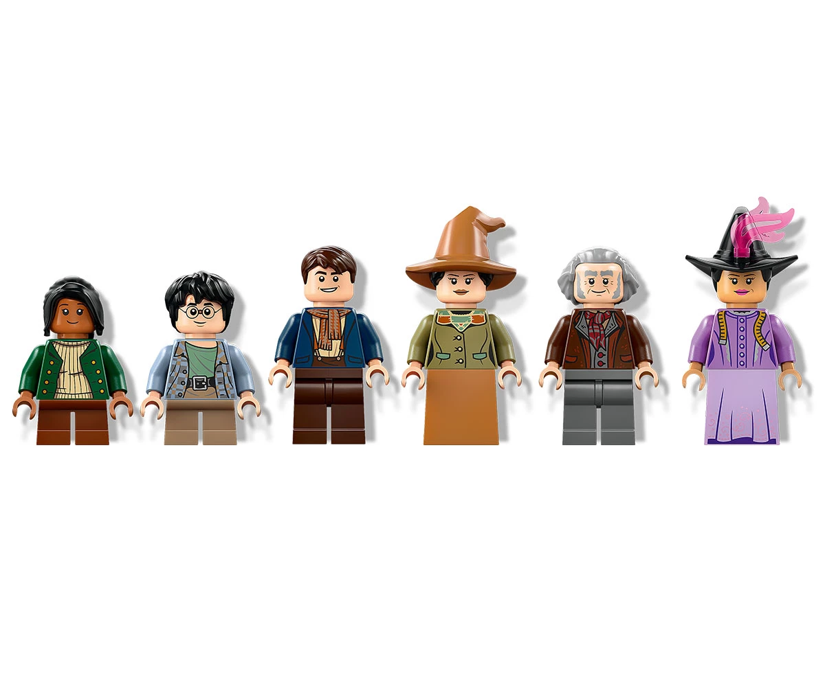 Включва и 6 колекционерски минифигури LEGO® Harry Potter™ – Хари Потър, Гарик Оливандър™, Мадам Молкин, Падма Патил, магьосник-ученик и вещица с количка с цветя;