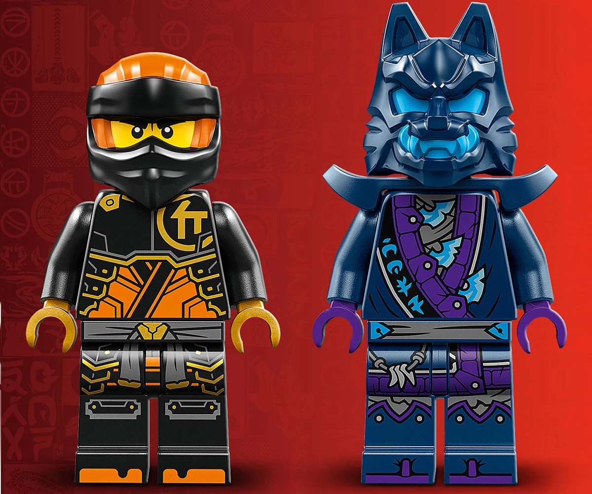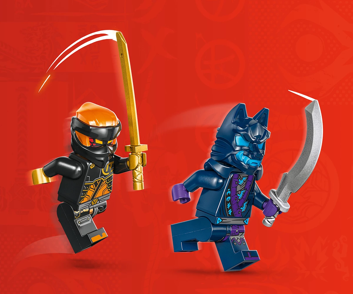 2 минифигури от NINJAGO® – комплектът включва Коул с мини катана и воин с маска на вълк и меч, така че децата да могат да пресъздават битките от сезон 2 на телевизионното шоу NINJAGO Dragons Rising