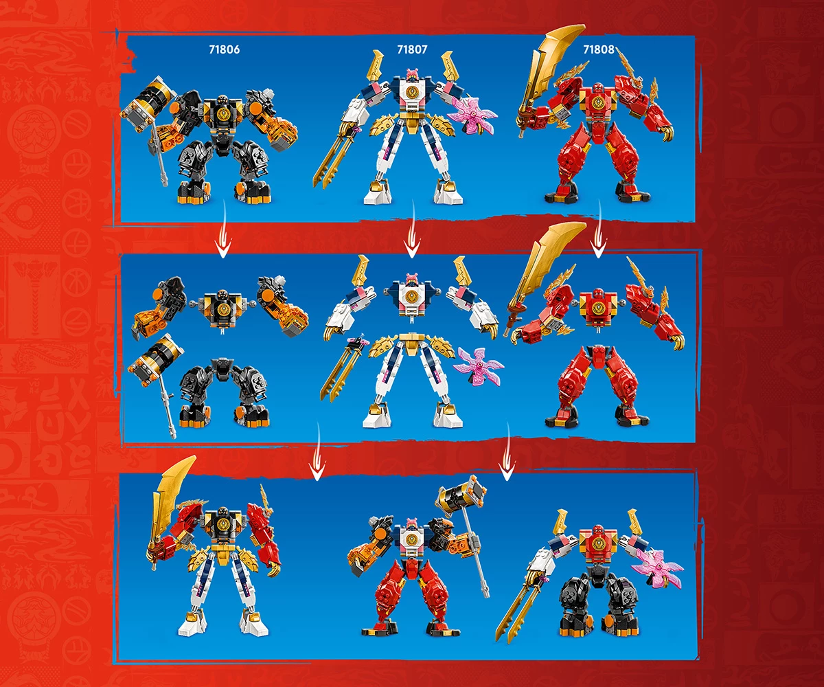 Още роботи с възможност за персонализиране – децата могат да разменят и комбинират части от робота на Коул с „Елементният технически робот на Сора“ (71807) и „Елементният огнен робот на Кай“ (71808), които се продават отделно