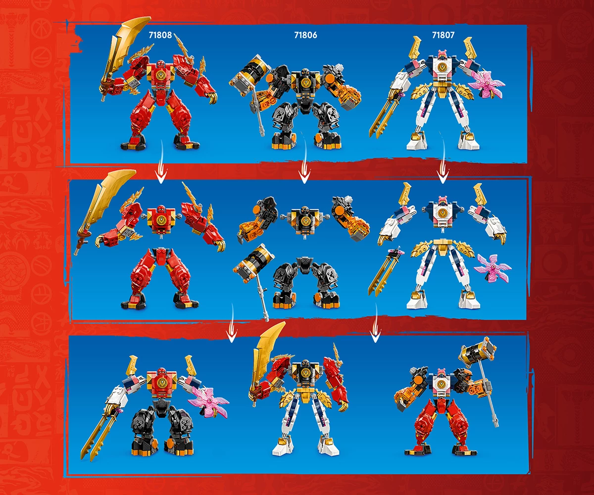 Още роботи с възможност за персонализиране – децата могат да разменят и комбинират части от робота на Кай с „Елементният земен робот на Коул“ (71806) и „Елементният технически робот на Сора“ (71807), които се продават отделно;