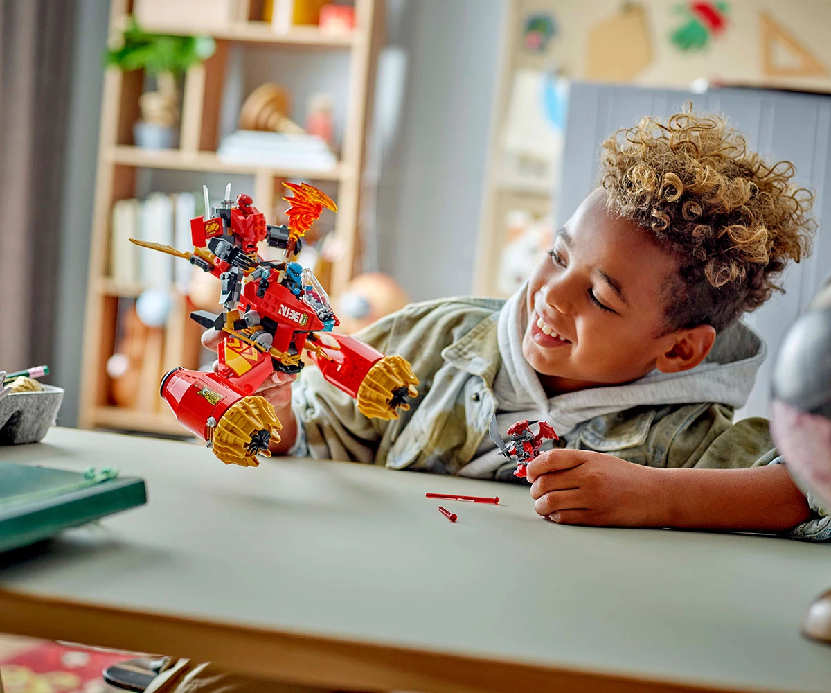 Нинджа играчка за деца – момчета и момичета над 7 години могат да разиграват невероятни битки от сезон 3 на ТВ сериала NINJAGO® Dragons Rising с робота буреносен ездач на Кай;
