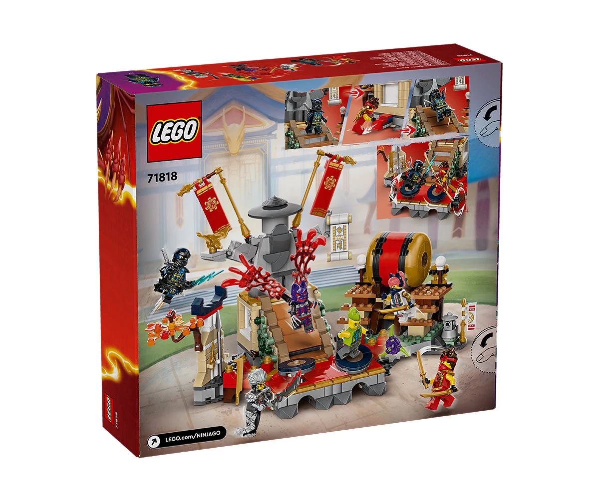 Боен комплект за игра NINJAGO® за деца – момчета и момичета на възраст 7+ могат да пресъздадат невероятни екшън сцени от сезон 2 на ТВ сериала NINJAGO Dragons Rising с комплекта Арена за битки в турнира;