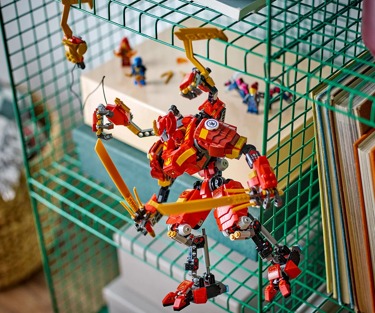 Подвижен робот – ръцете, краката, торсът, главата и стъпалата на нинджа робота са подвижни и той се предоставя с 2 големи катани и отваряща се кабина с място за минифигура;