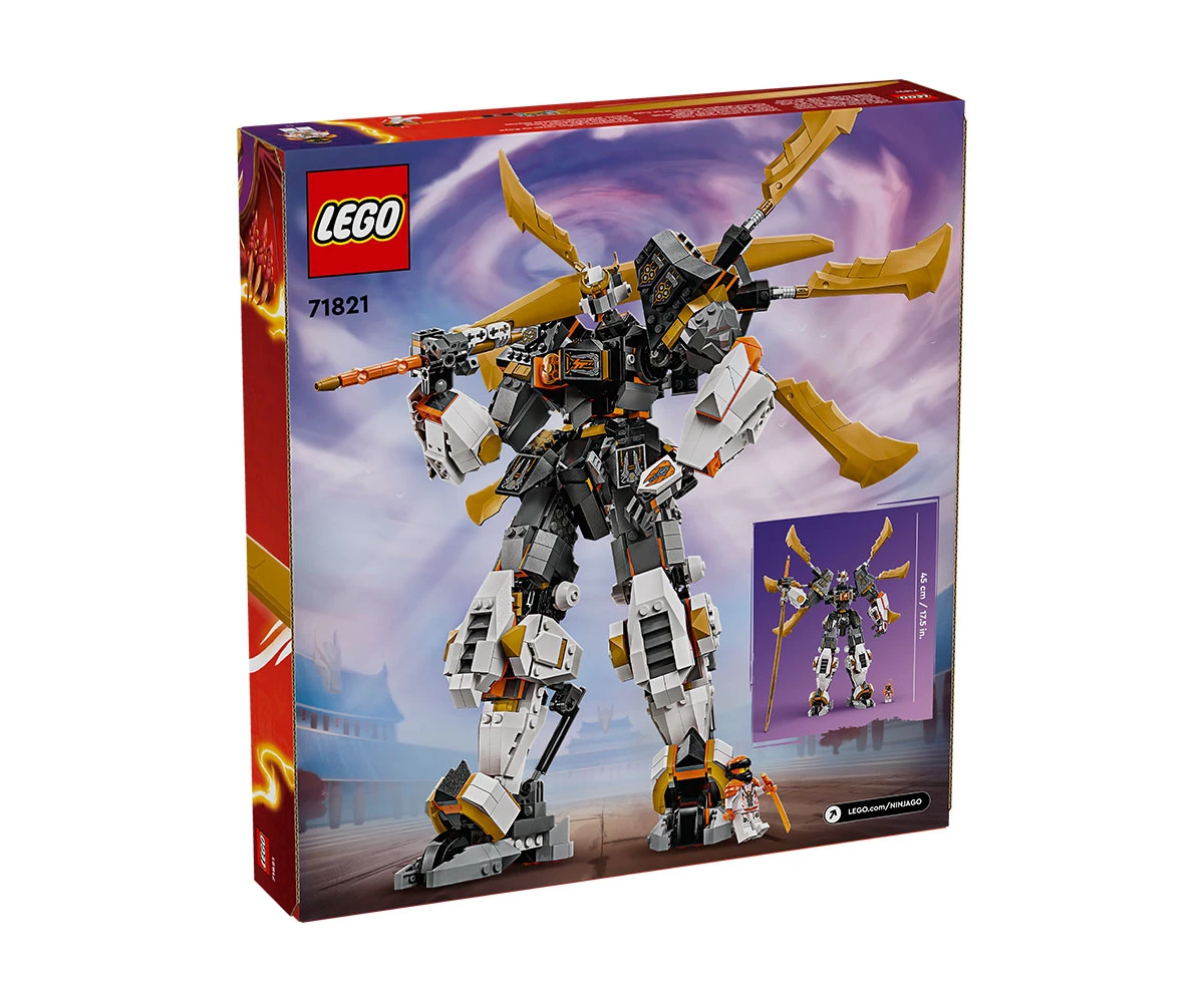 1 минифигура NINJAGO® – комплектът за игра с нинджи се предлага с робот Коул, въоръжен с 2 златни мечове катана;