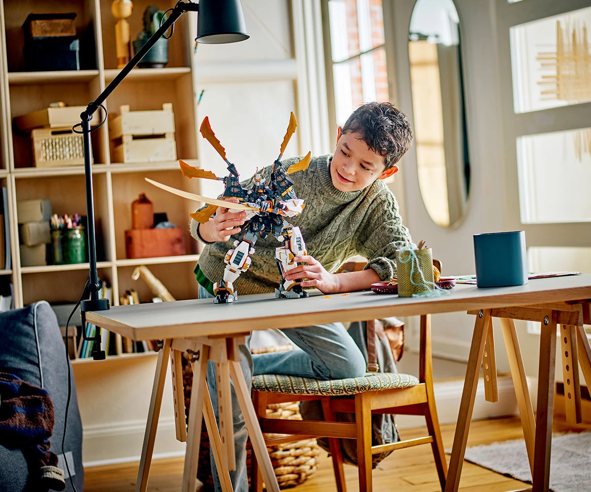 Изпълнена с екшън играчка с робот за деца – момчета и момичета над 12 години могат да разиграват битки от сезон 2 на ТВ сериала NINJAGO® Dragons Rising с драконовия робот-титан на Коул;