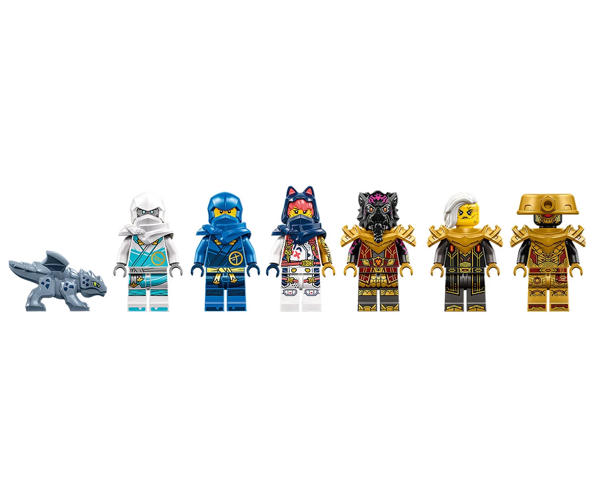 6 минифигури – Джей, Сора и Зейн, които се предоставят с по 2 златни катани, за да се справят с лорд Рас и неговия чук, императрица Беатрикс с нейния меч на империята и имперски страж с жезъл;