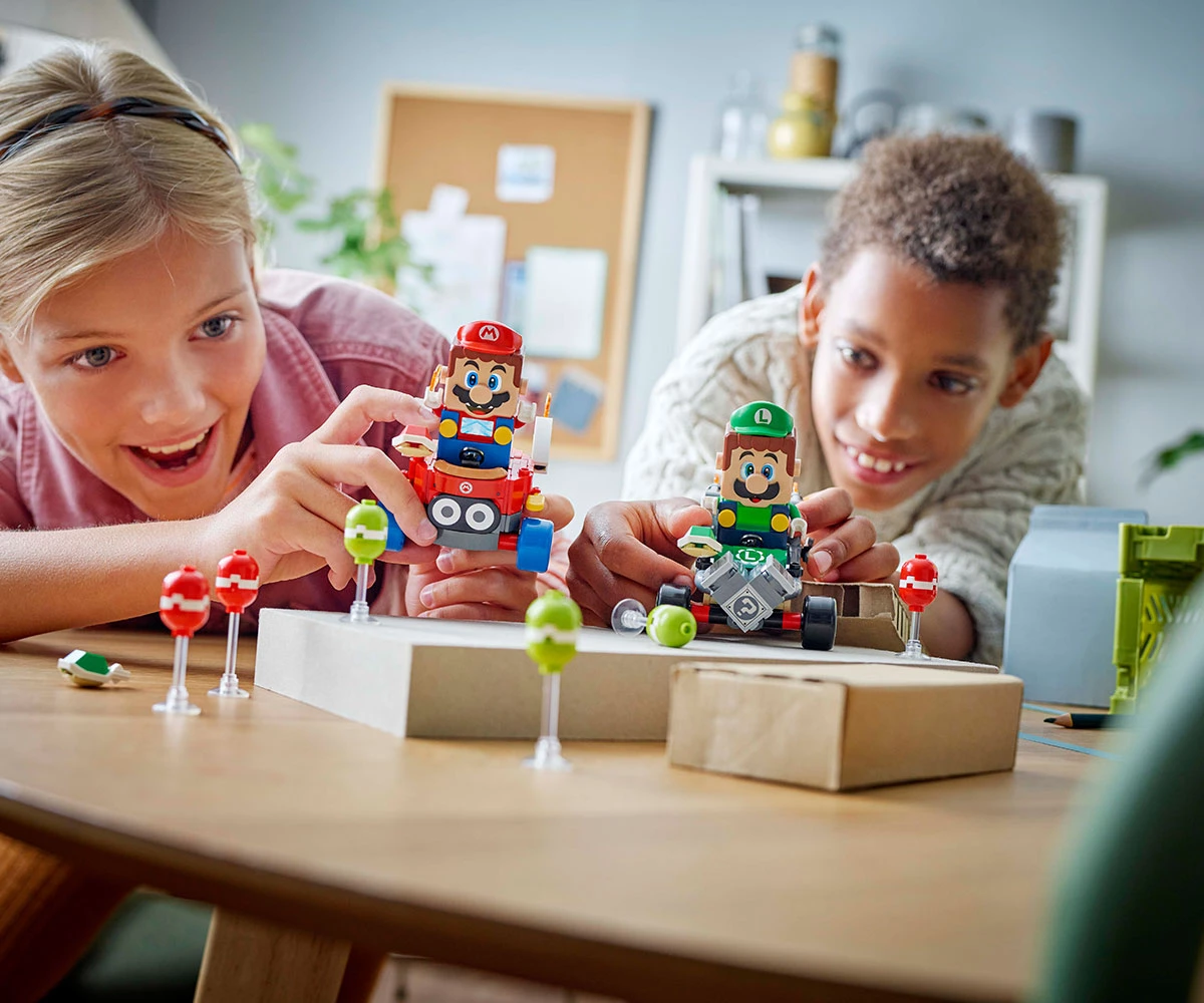 Идея за подарък Mario Kart™за рожден ден за деца – подарете комплекта от LEGO® Super Mario™ на момчета, момичета и геймъри на възраст над 8 години; за интерактивна игра е необходим един от комплектите 71439, 71440 или 71441 (продават се отделно);