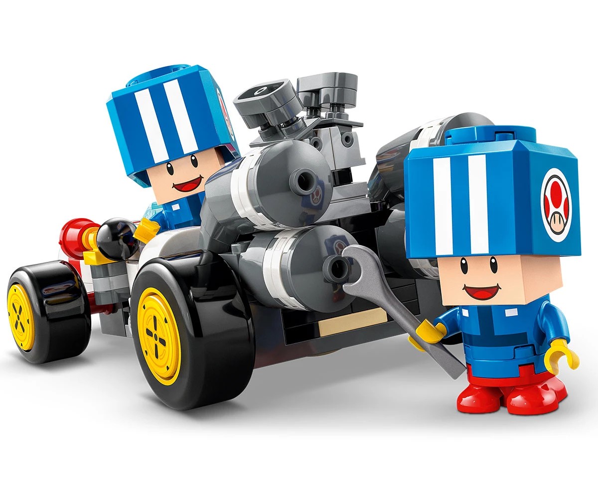 2 колекционерски фигури Nintendo® на Blue Toad (Pit Crew) – този комплект Mario™ Kart от тухлички LEGO® включва 2 фигури на Blue Toad (Pit Crew) в син монтьорски екип плюс различни аксесоари;