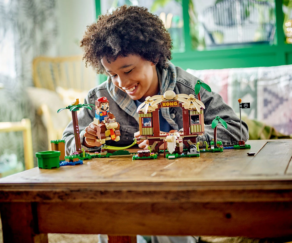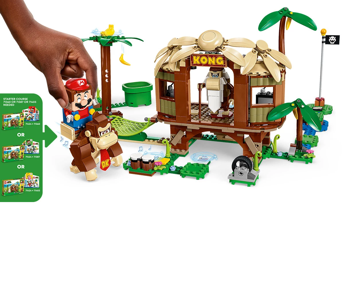 Присъединете се към екипа на DK в Donkey Kong’s Tree House (71424) – децата се обединяват с Donkey Kong в джунглата за забавно подаряване на банани и свирене на конга с цветния комплект с допълнения от LEGO® Super Mario™;