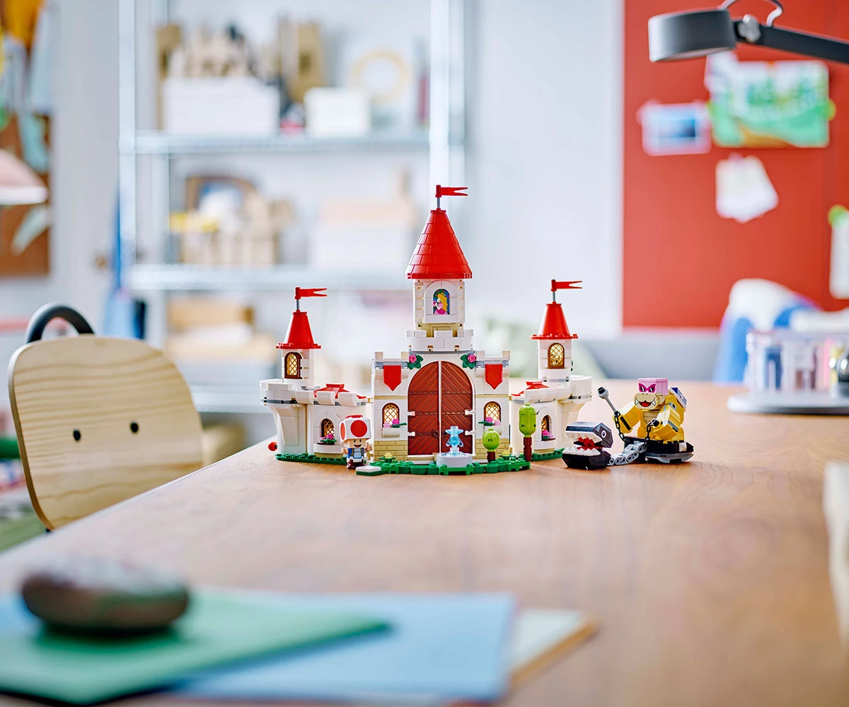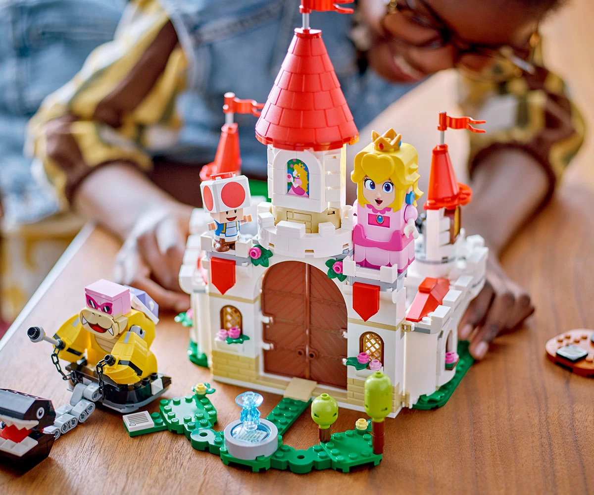 Забавен комплект играчки с герои на Nintendo® за деца - Разгледайте замъка на принцесата, играйте по роли като герои на Super Mario™, водете битка с Рой и други с този комплект LEGO® Super Mario™ Замъка на Peach;