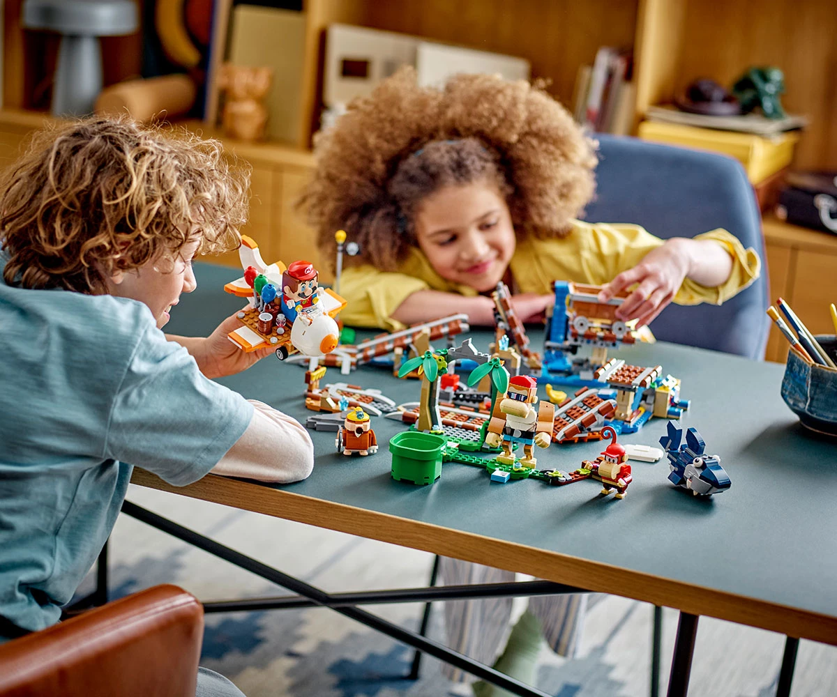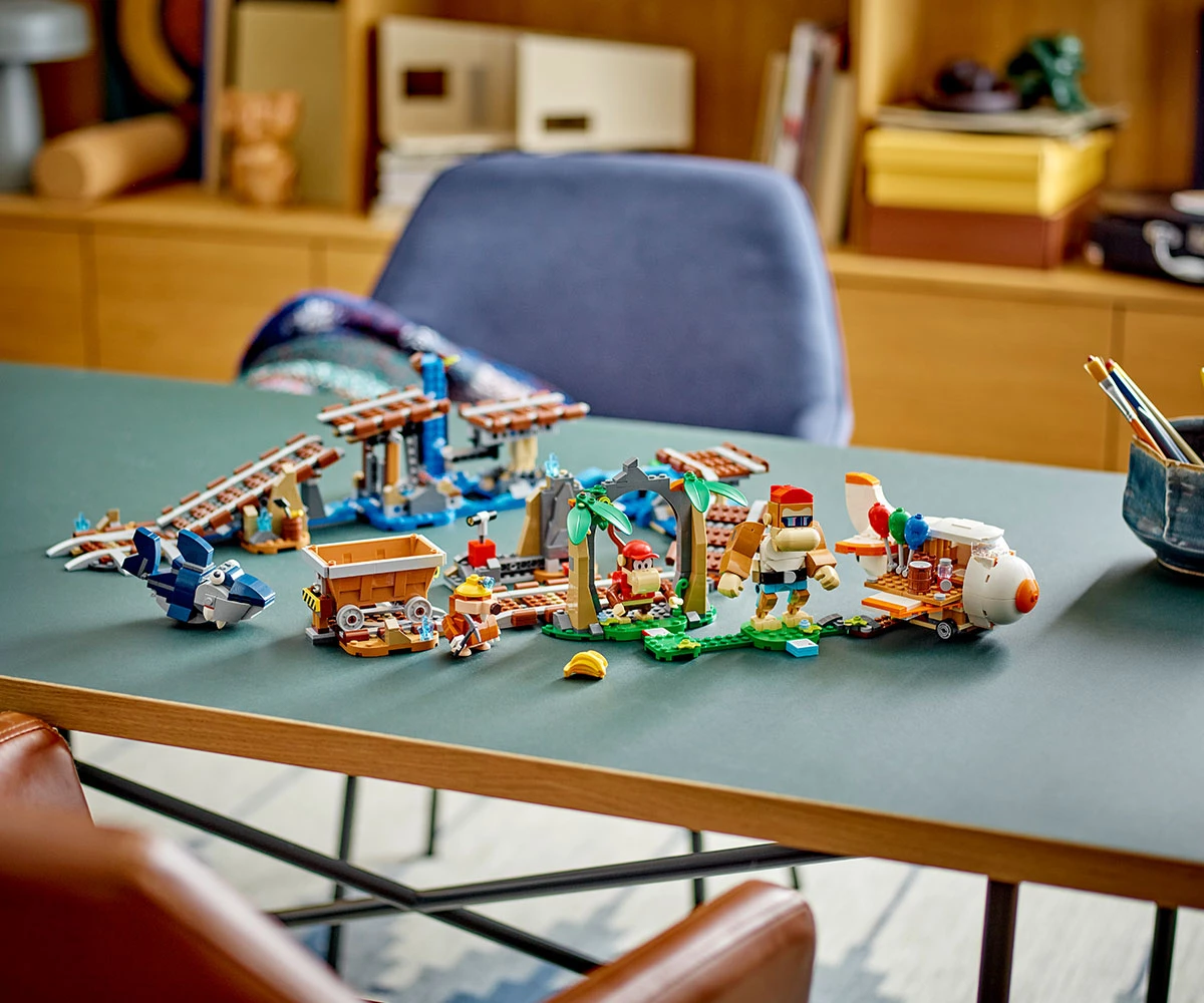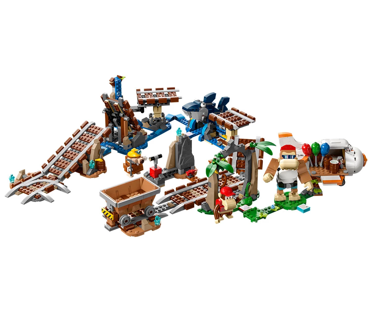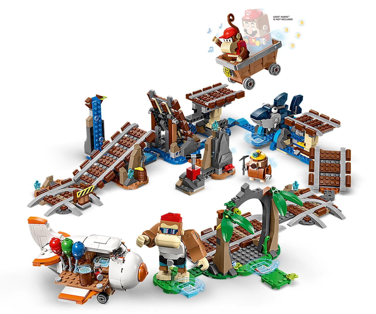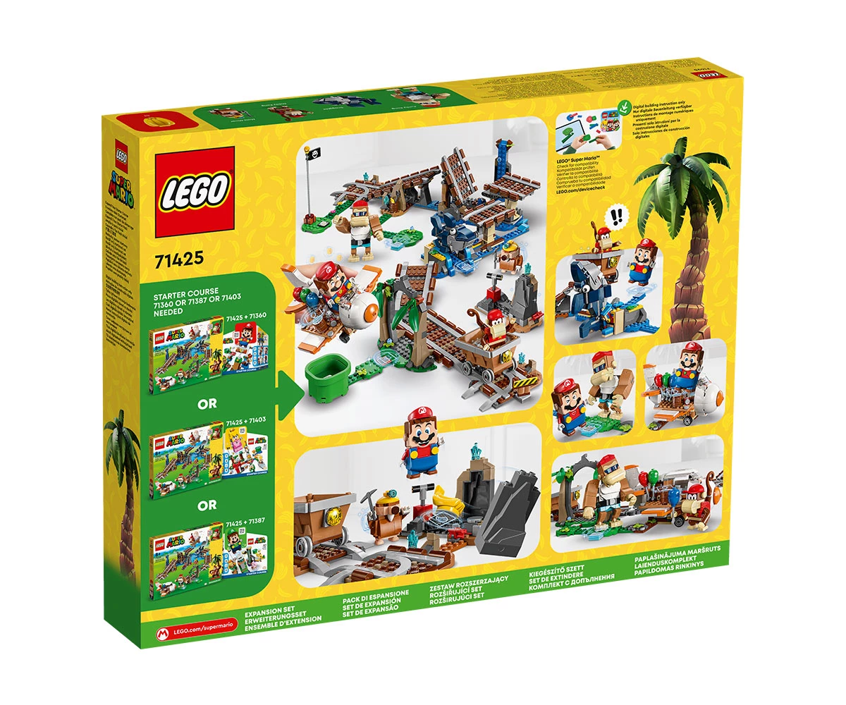 Комплект с допълнения Diddy Kong's Mine Cart Ride (71425) – пресъздайте предизвикателства с количката на Donkey Kong™, летене със самолет и взривяване на скали с комплекта LEGO® Super Mario™ за деца;