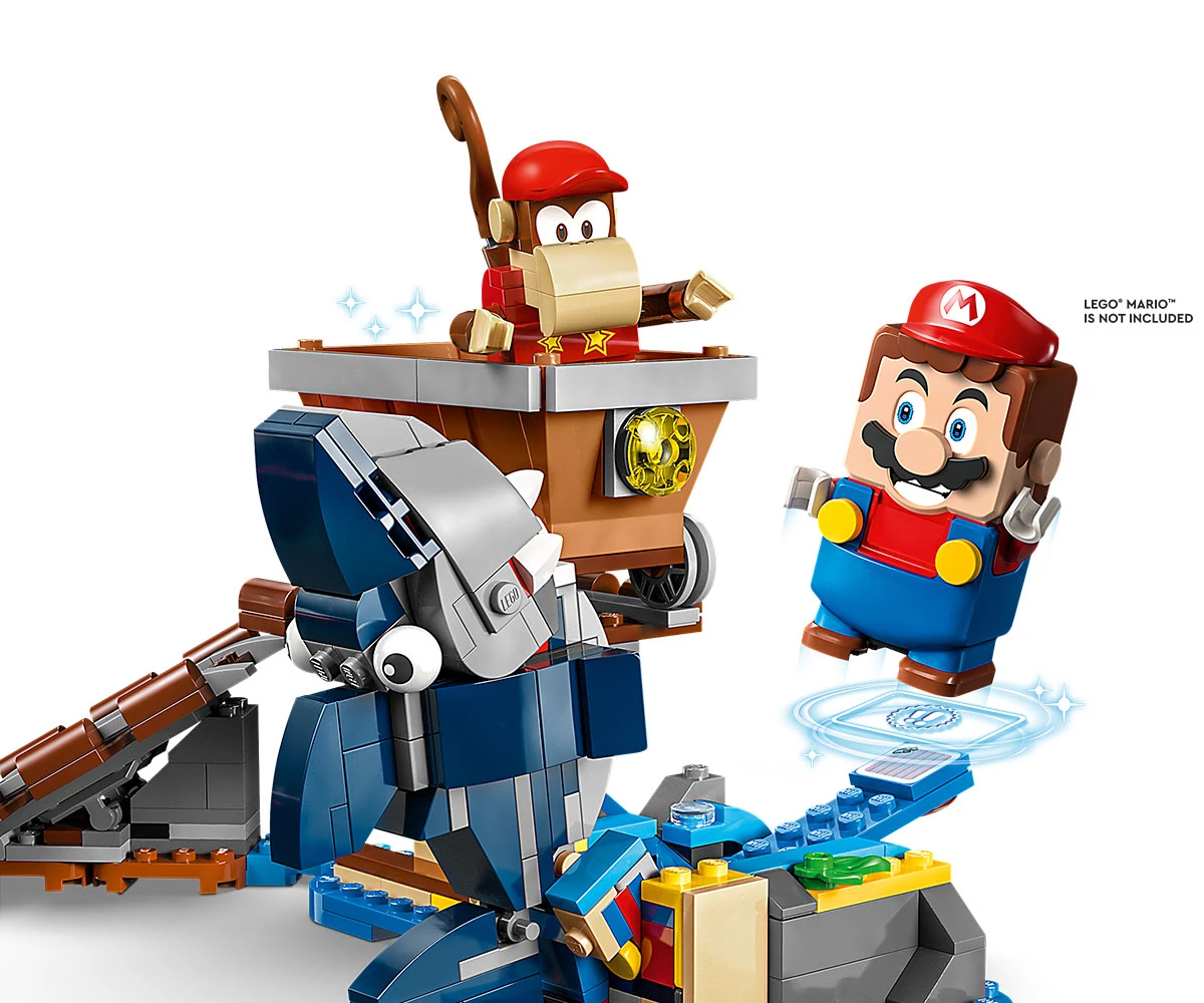 4 фигури от LEGO® Super Mario™ от света на Donkey Kong™ – Funky Kong и Diddy Kong, плюс Snaggles за отстраняване от пътя и Mole Miner за побеждаване;