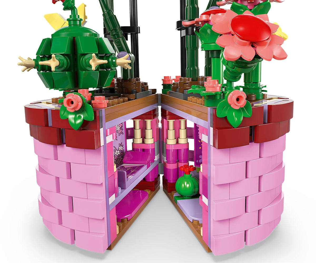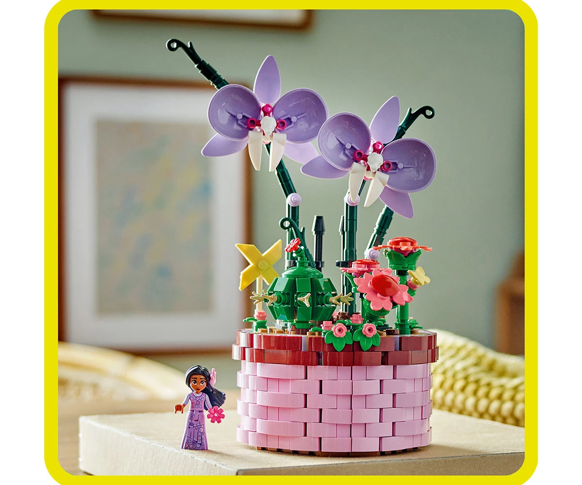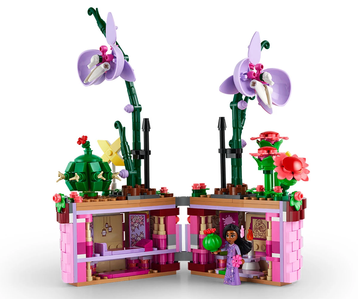 Творчески възможности – комплектът за конструиране включва отваряща се саксия с дизайн на кошница, вдъхновен от филма, цветя и фигура миникукла на Изабела от LEGO® ǀ Disney Encanto;