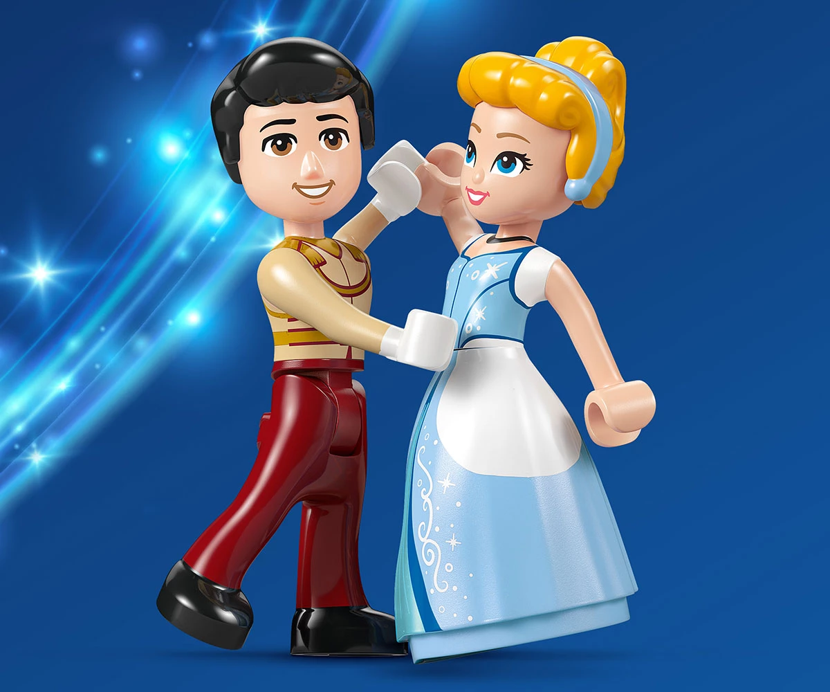 Функции на фантастична играчка за конструиране – поставете принцесата на Disney Пепеляшка и Чаровния принц на въртящия се под, за да могат да танцуват, или заменете сбруята на коня със седло или чанта;