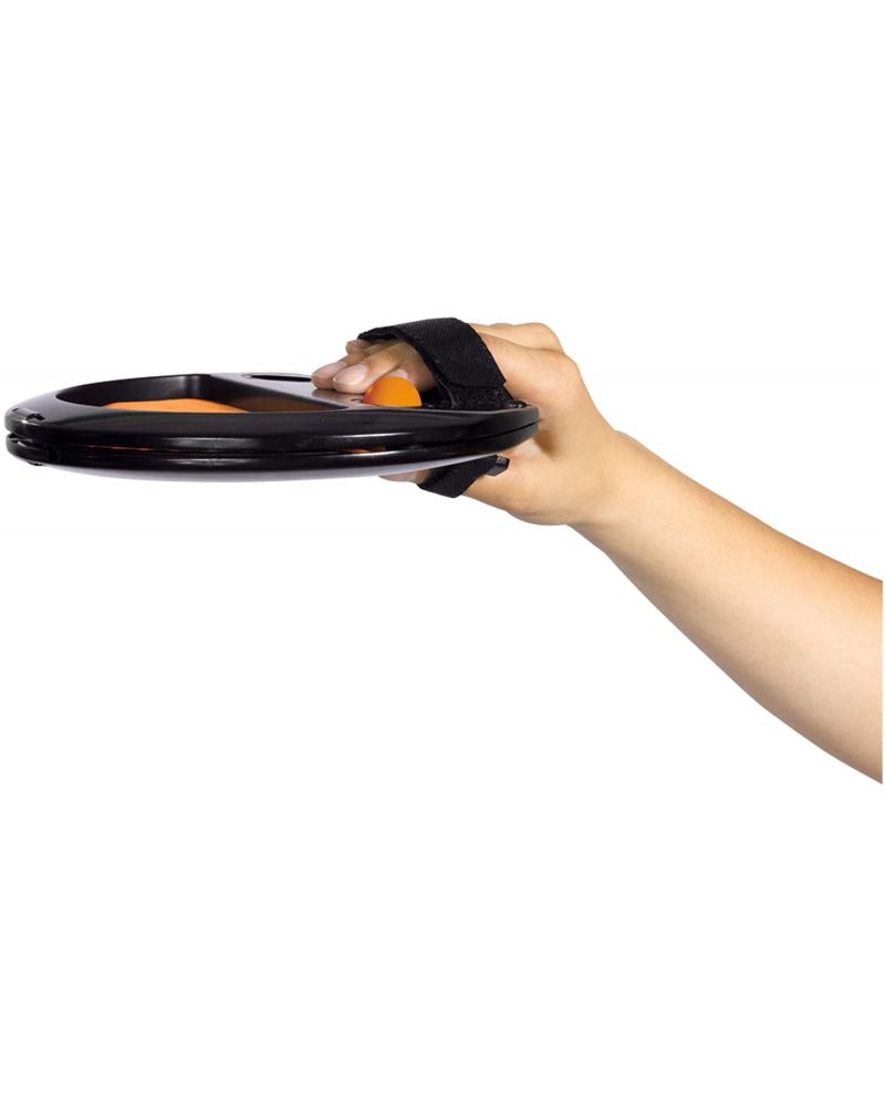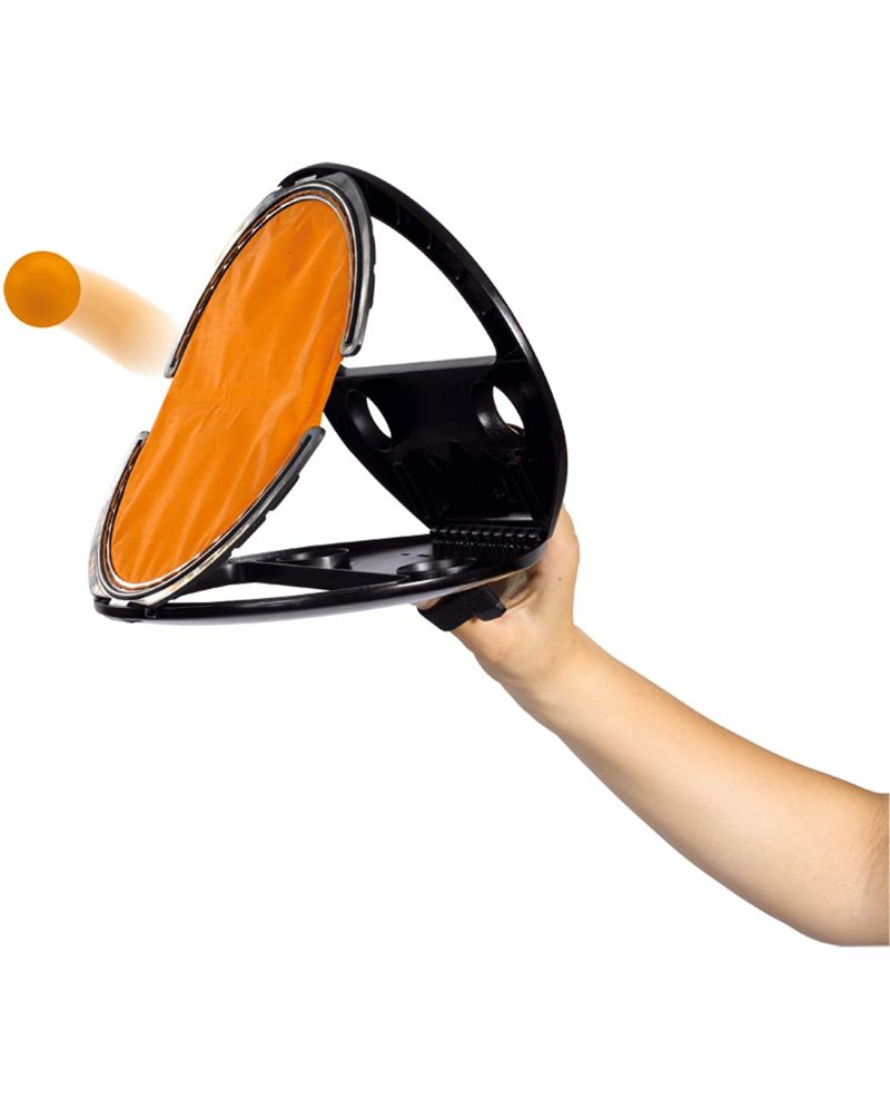 Подобно на гигантска оранжева уста, ракетата за скуап хваща топчето, но попаднало върху нея, то моментално отскача;