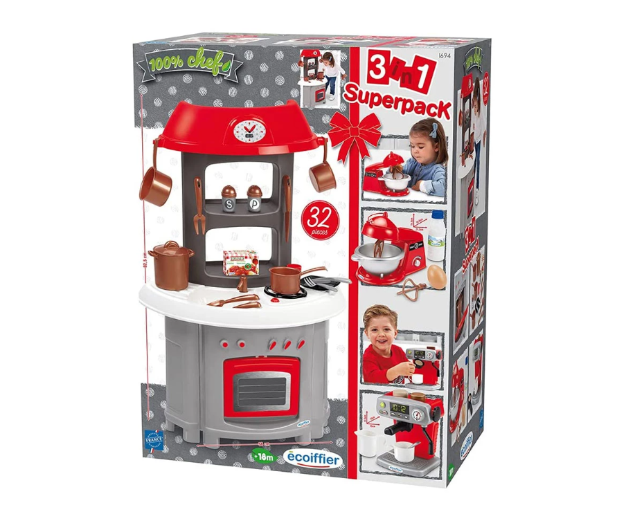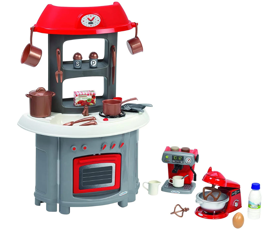 Супер оборудвана кухня ще накара децата да се забавляват да готвят като възрастни със своята кухня и домакински уреди;
