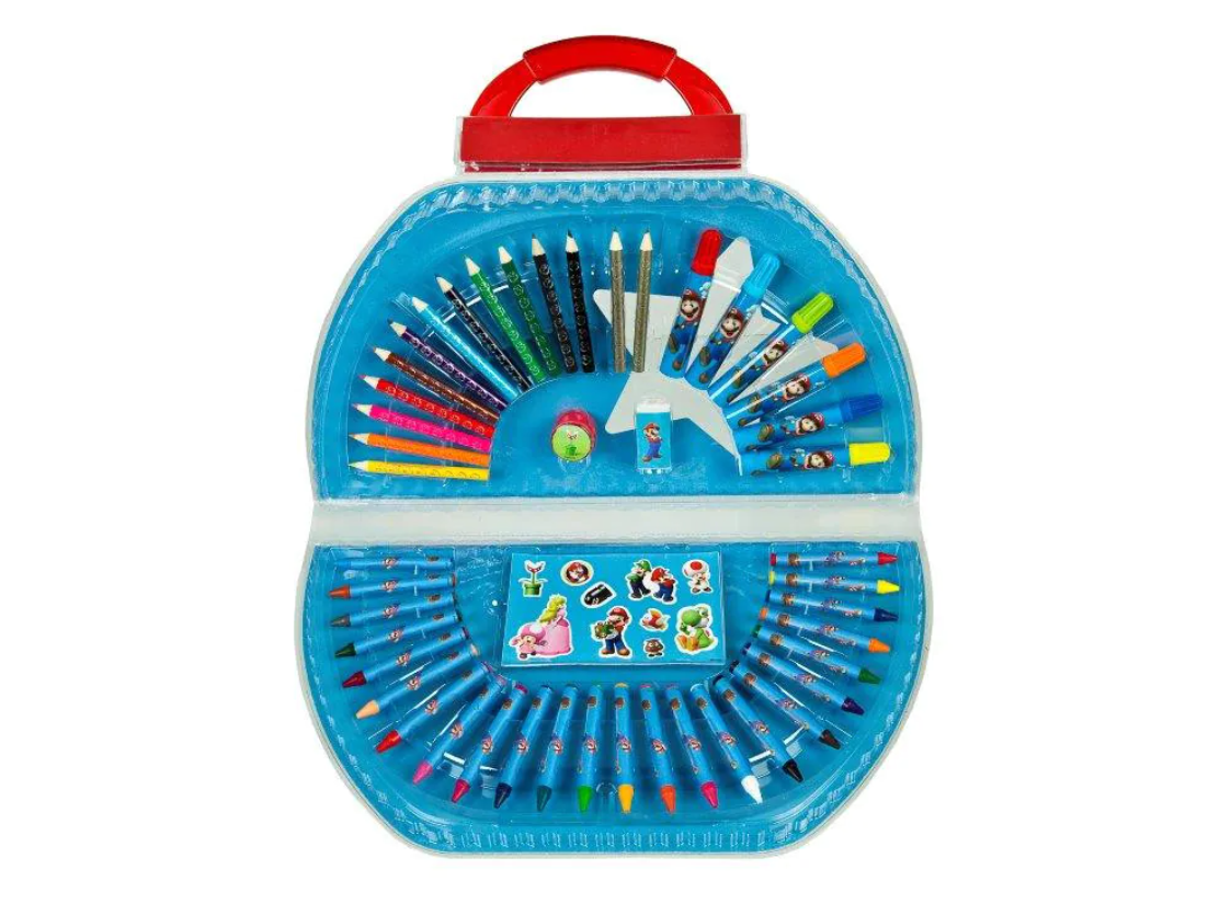 Комплектът съдържа: 12 миницветни молива, 6 маркера, 24 пастела, гума, 2 минимолива, острилка, 4 плаката, лист със стикери, опаковани в практично куфарче с дръжка;