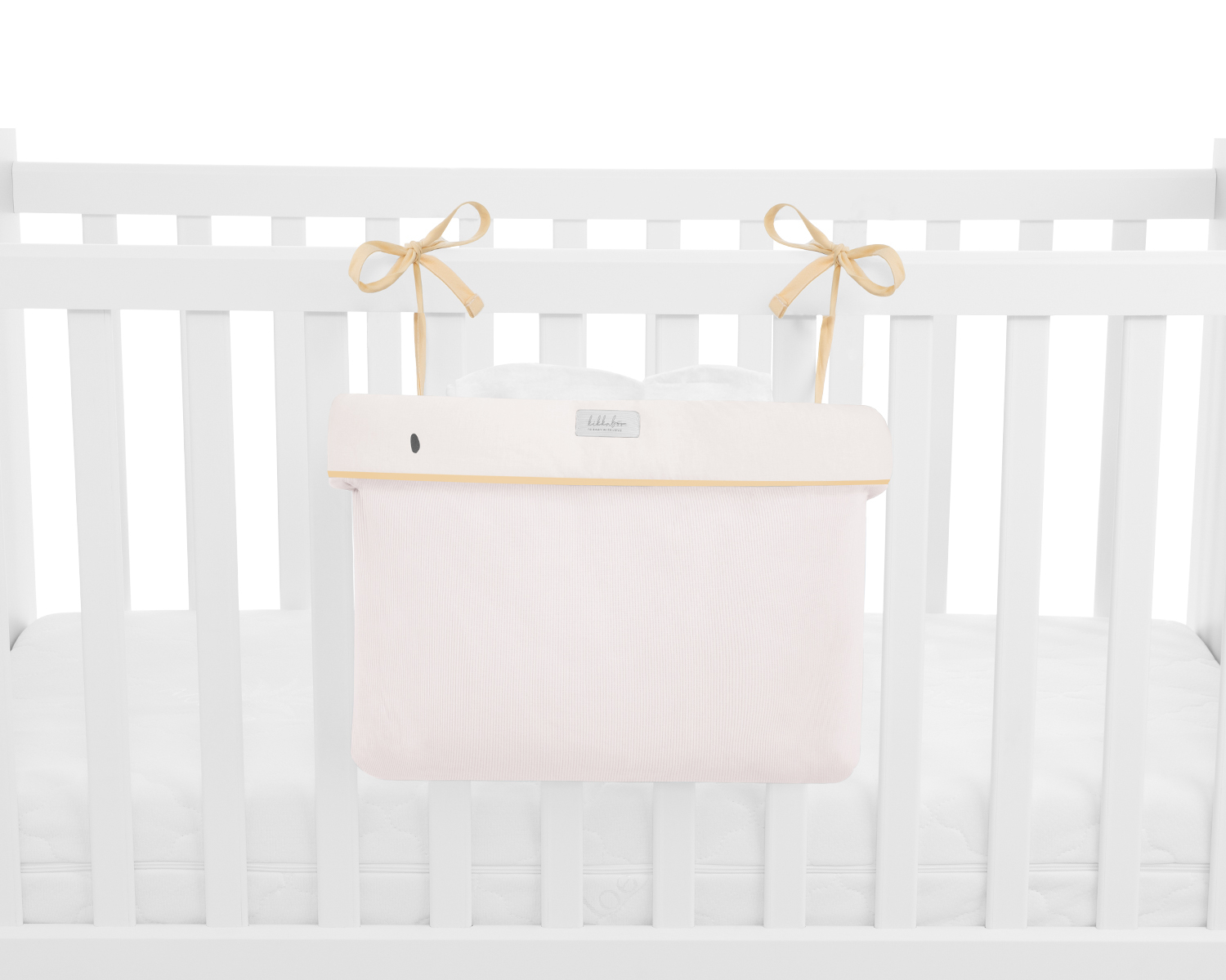 Луксозен кош за памперси с връзки, изработен от висококачествени памучни материи;