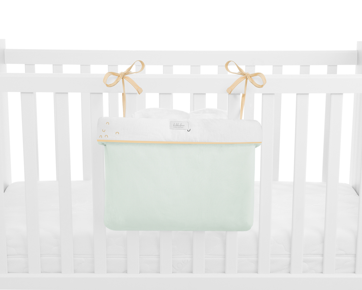 Луксозен кош за памперси с връзки, изработен от висококачествени памучни материи;
