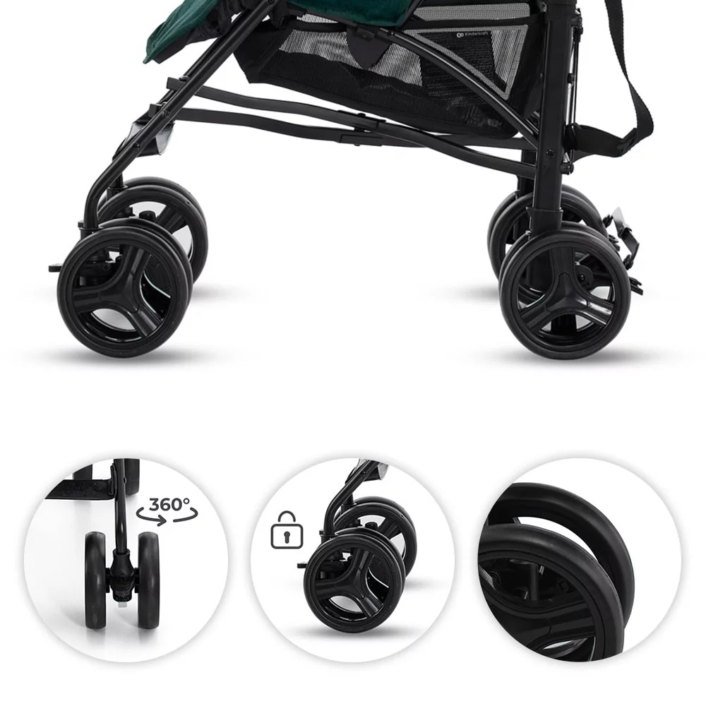 Въртящи се на 360 градуса предни колела с опция за блокиране;