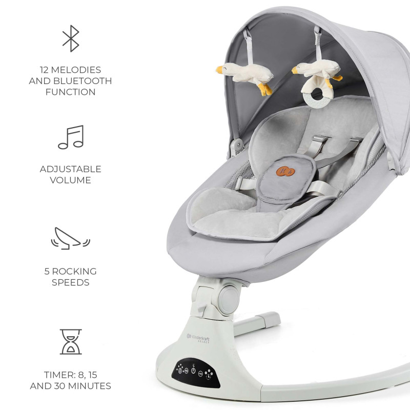 • Люлеещата се люлка предлага три нива на наклон на седалката, осигурявайки комфорт и ергономична опора за гръбначния стълб;