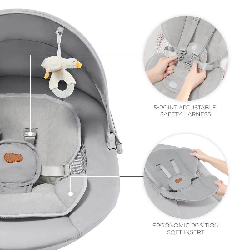 • Меката, подвижна вложка осигурява комфорта на мъничето и правилната позиция по време на люлеене;