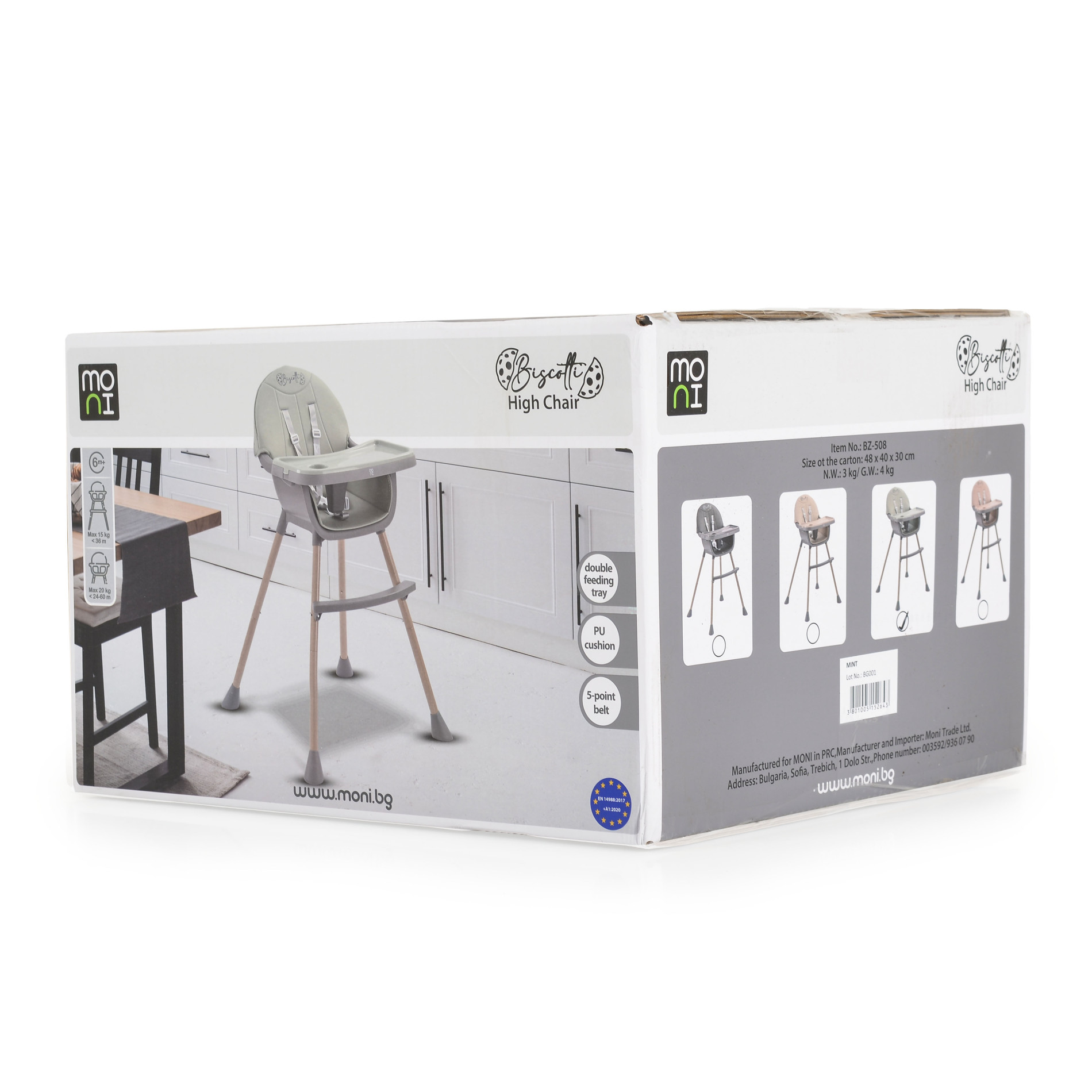 Бебешки и детски магазин "СЛАДУРЧЕТА" и марката "Moni" представят на Вашето внимание столче за хранене със следните характеристики: