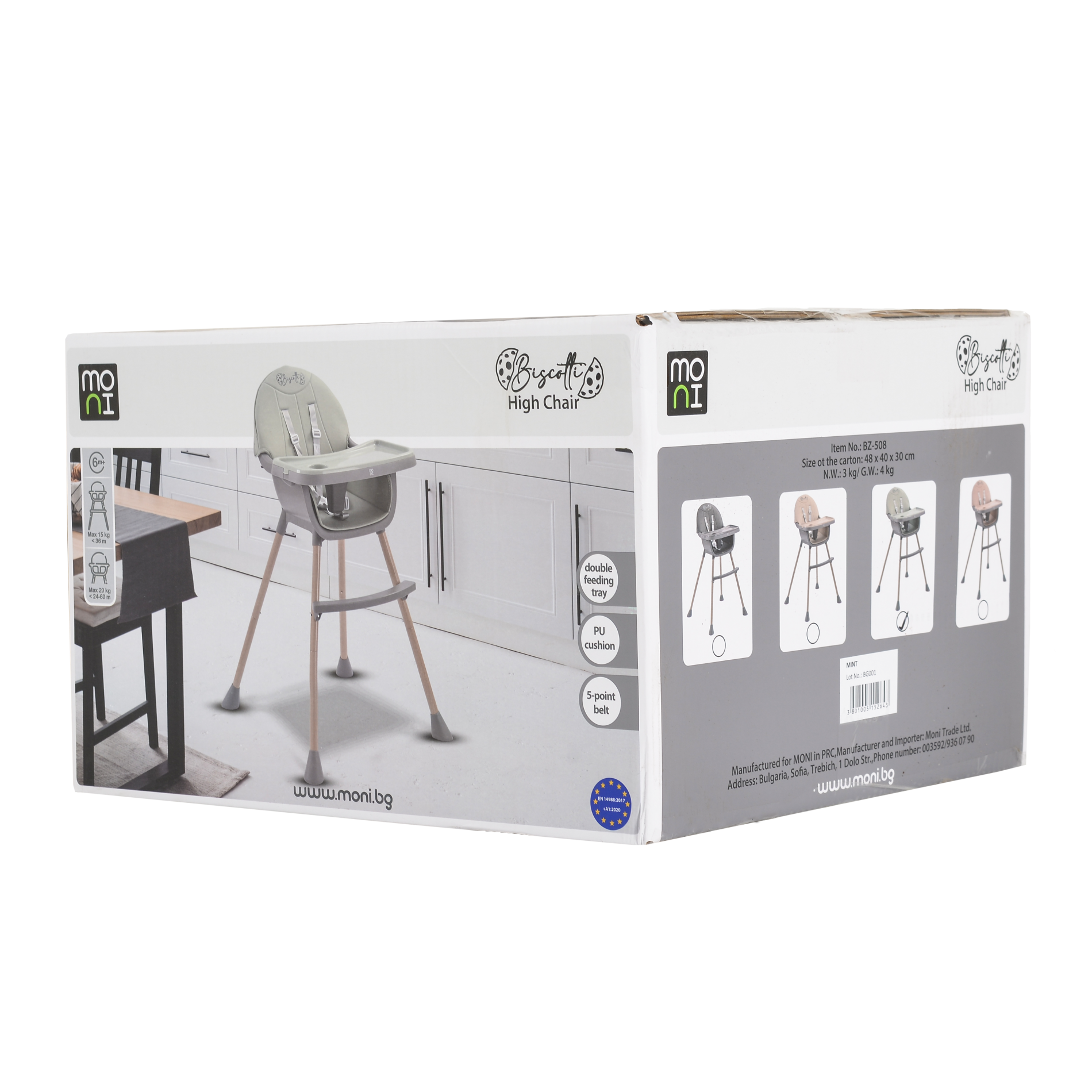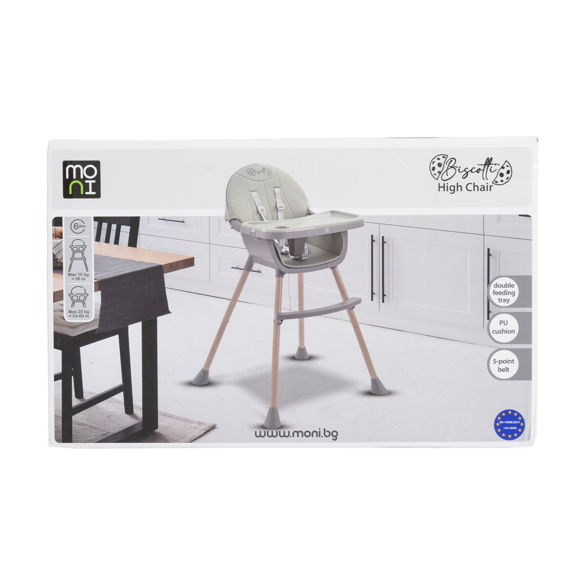 Бебешки и детски магазин "СЛАДУРЧЕТА" и марката "Moni" представят на Вашето внимание столче за хранене със следните характеристики: