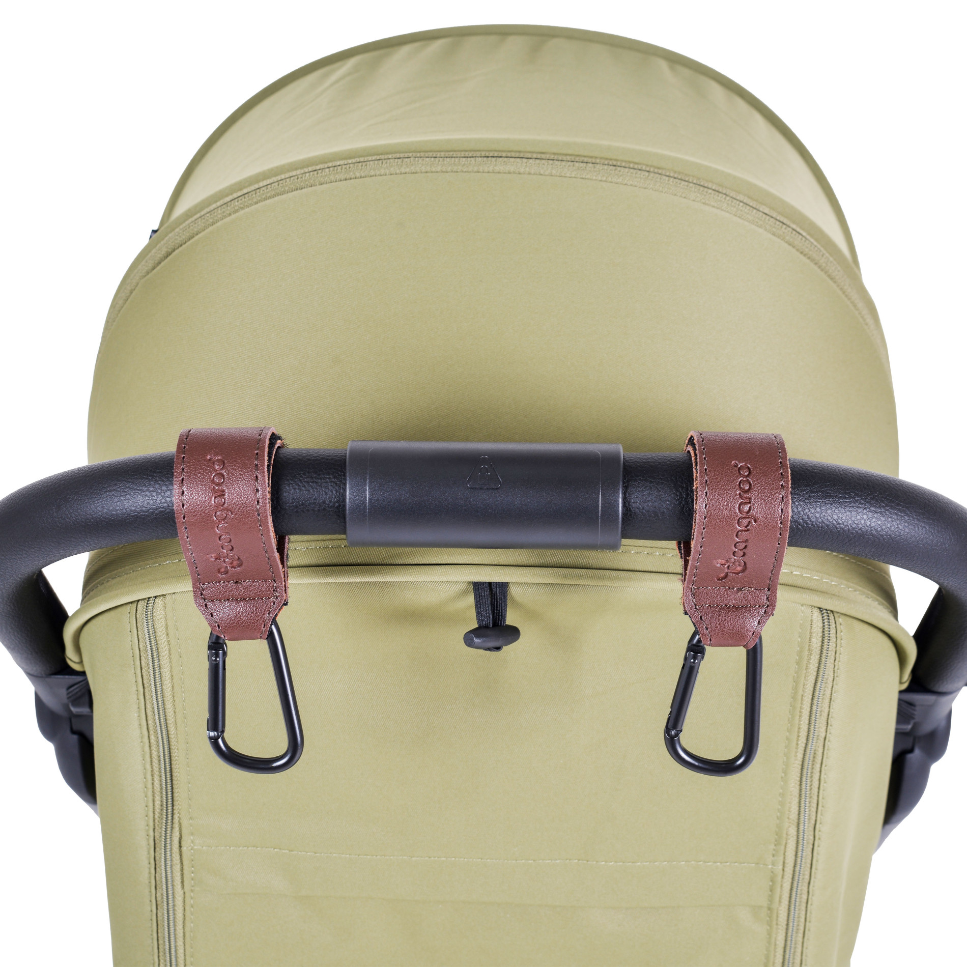 • Комплектът включва две закачалки, предназначени за удобно и сигурно прикрепване на различни видове багаж към дръжката на детска количка;