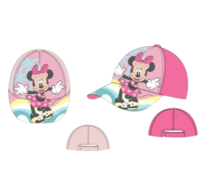 Шапката е в розов цвят с апликация на Мини Маус;