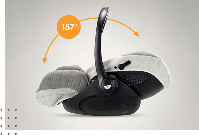 Превръща се в седалка с дълбоко накланяне, която може да се използва в превозното средство или с бебешка количка;