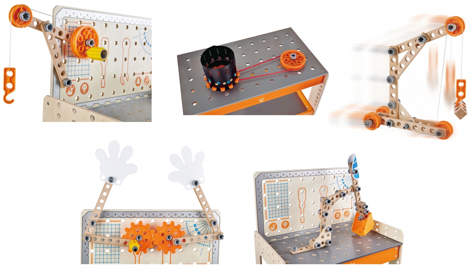 Съдържа всичко необходимо за провеждане на 15 експеримента и изграждане на устройства, включително багер, грабващи ръце, кран, асансьор, глава на робот, махащи ръце, тресчотка, въртяща се светлина, ветрогенератор, повдигаща се врата, превключвател на картини, скачаща жаба, генератор на звук, зоетроп (просто устройство за анимация, което създава илюзията за движение, като показва последователност от рисунки или снимки, показващи фази на това движение и гравитационно превозно средство;