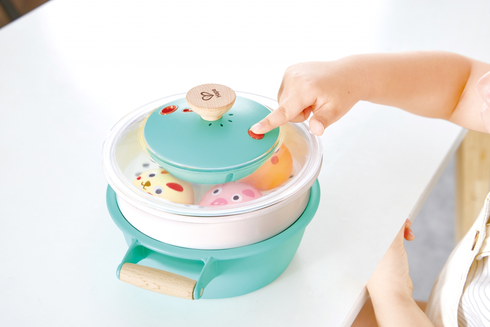 Натиснете червения бутон и след 10–15 секунди ще видите хладна мъгла да се издига точно като истинска пара и ще чуете звуковите ефекти при готвене;