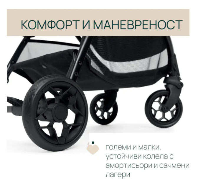 • Високопроизводителните колела, оборудвани със сачмени лагери и амортисьори, гарантират максимална маневреност върху всякакъв тип повърхност;
