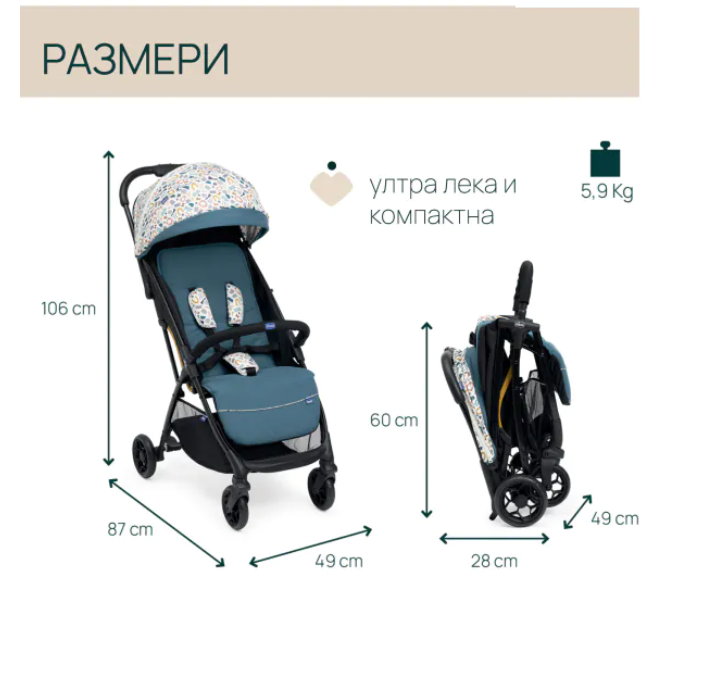 Бебешка лятна количка Chicco Glee, Joyful Teal