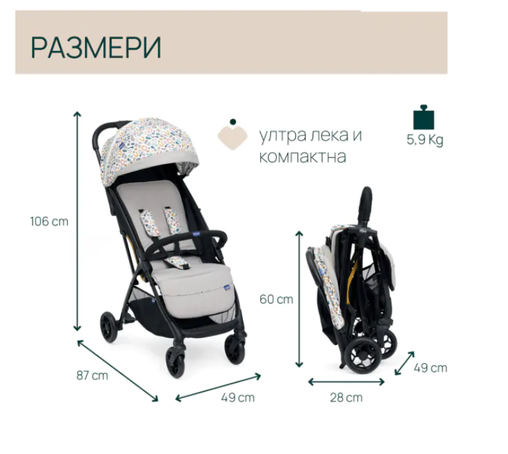 Бебешки и детски магазин "СЛАДУРЧЕТА" и марката "Chicco" представят на Вашето внимание лятна количка със следните характеристики: