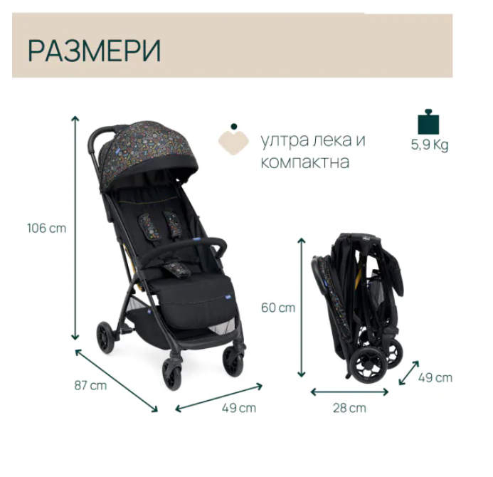 Бебешки и детски магазин "СЛАДУРЧЕТА" и марката "Chicco" представят на Вашето внимание лятна количка със следните характеристики: