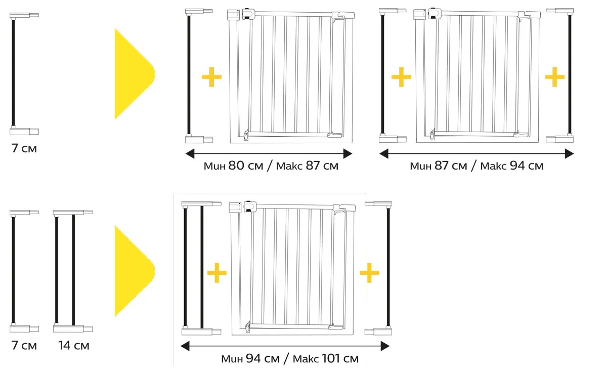 Удължител за метална универсална преграда за врата 7 см може да се използва самостоятелно или в комбинация с други удължители на преградата: