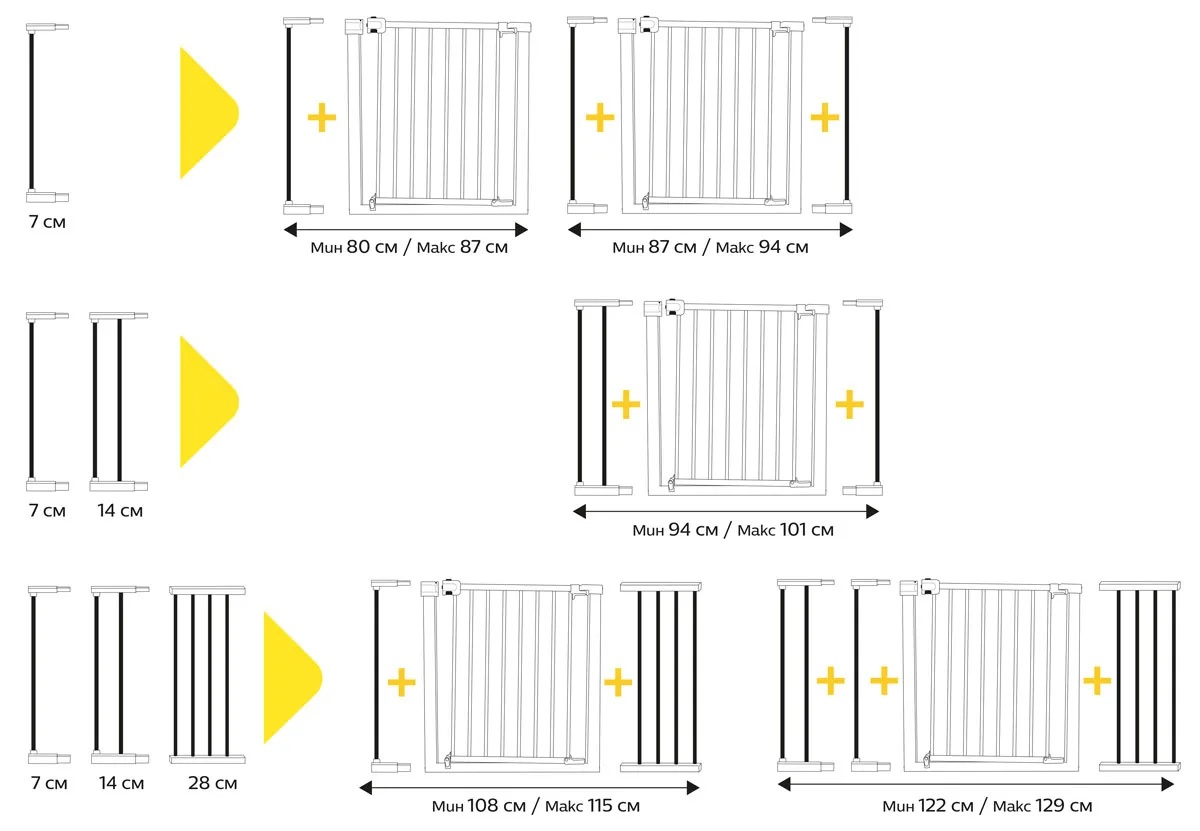 до обща ширина от 129 см на Safety 1st Универсална метална преграда за врата;