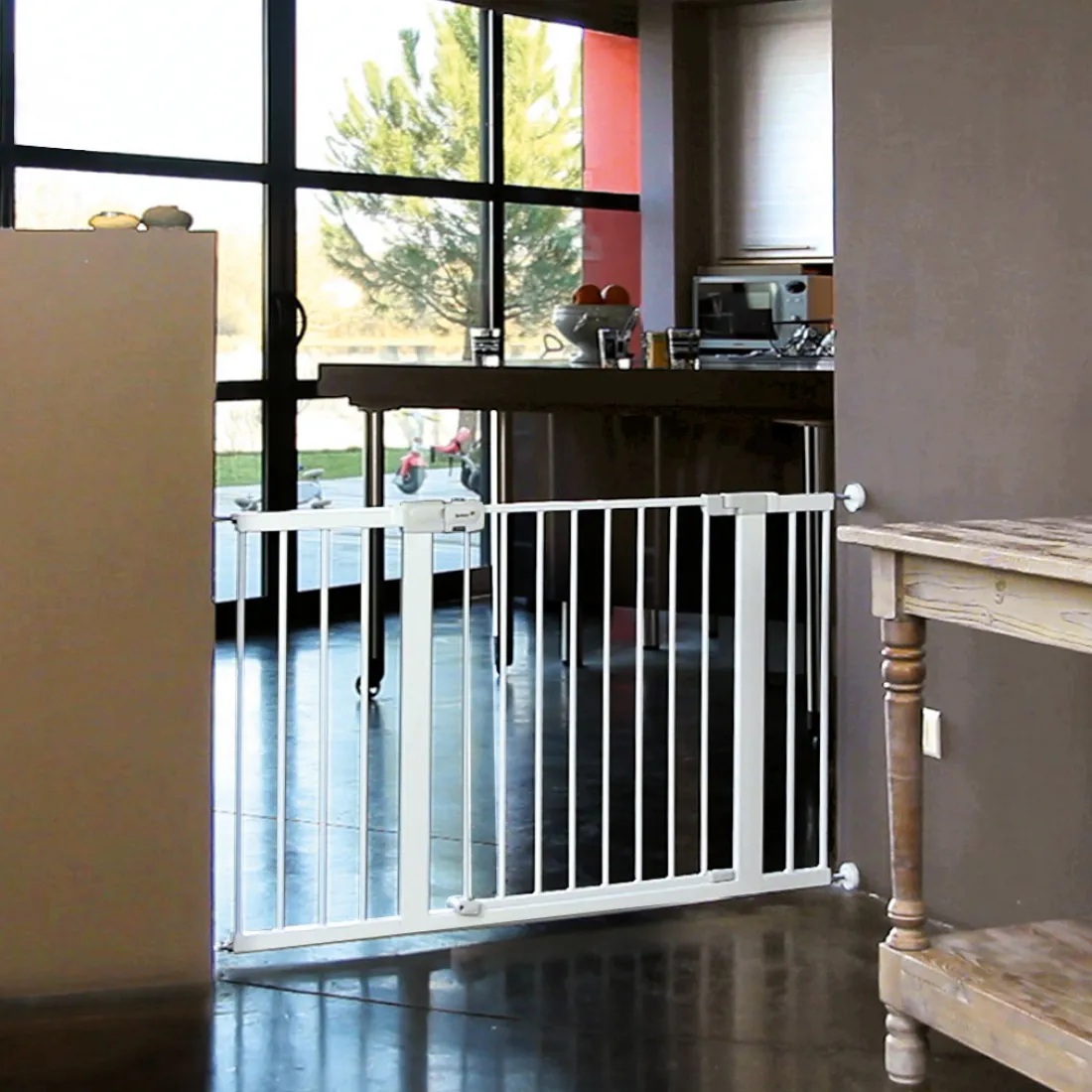 до обща ширина от 129 см на Safety 1st Универсална метална преграда за врата с механизъм за автоматично заключване;