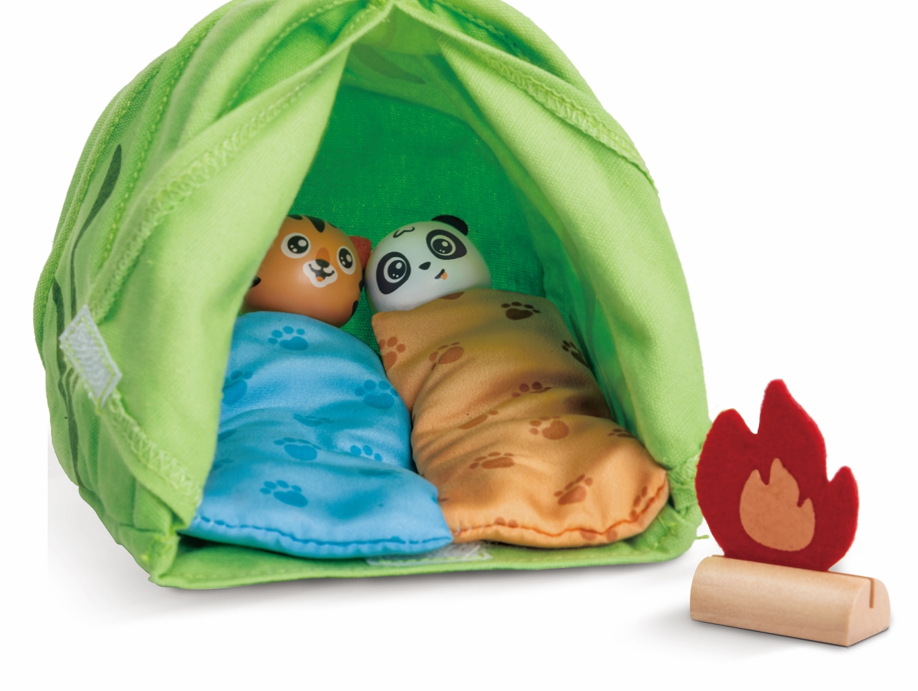 Този очарователен мини комплект за игра на открито използва фигурки, инструменти за къмпинг и забавни аксесоари, за да научи вашето дете на опазване на околната среда;