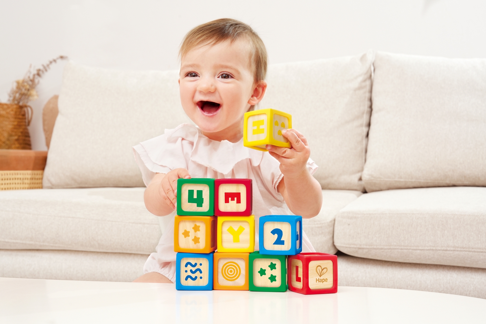 Всяко кубче е в различен цвят, а всяка страна е с различна тема: цифри, букви или форми, насърчавайки ранния когнитивен растеж;