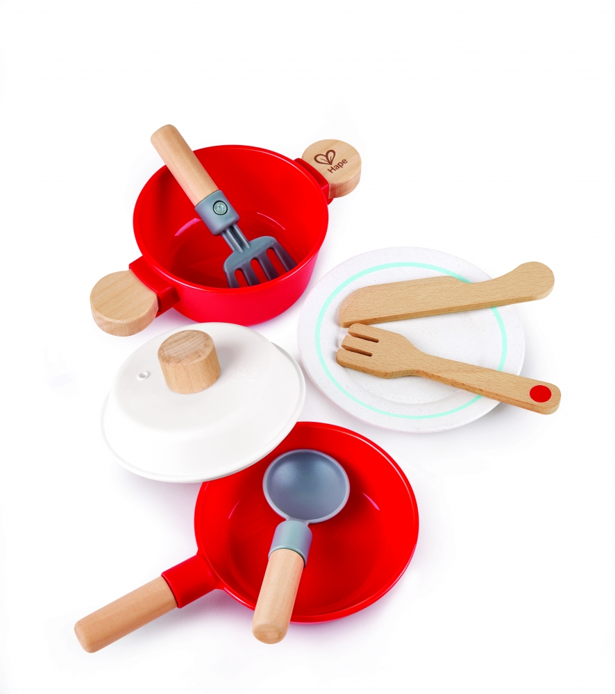 Комплектът Little Chef включва всичко необходимо на вашето дете за приготвяне и сервиране на вкусни ястия, включително тенджера, тиган, капак, лъжица, шпатула, една чиния и един комплект ножове и вилици;