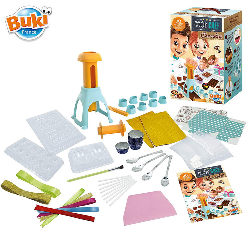 Комплектът включва много аксесоари - 8 формички за мъфини, форма за шоколадов бар, пръчици, близалки, кутии за подаръци и разбира се книжка с 20 рецепти с илюстрирани инструкции;