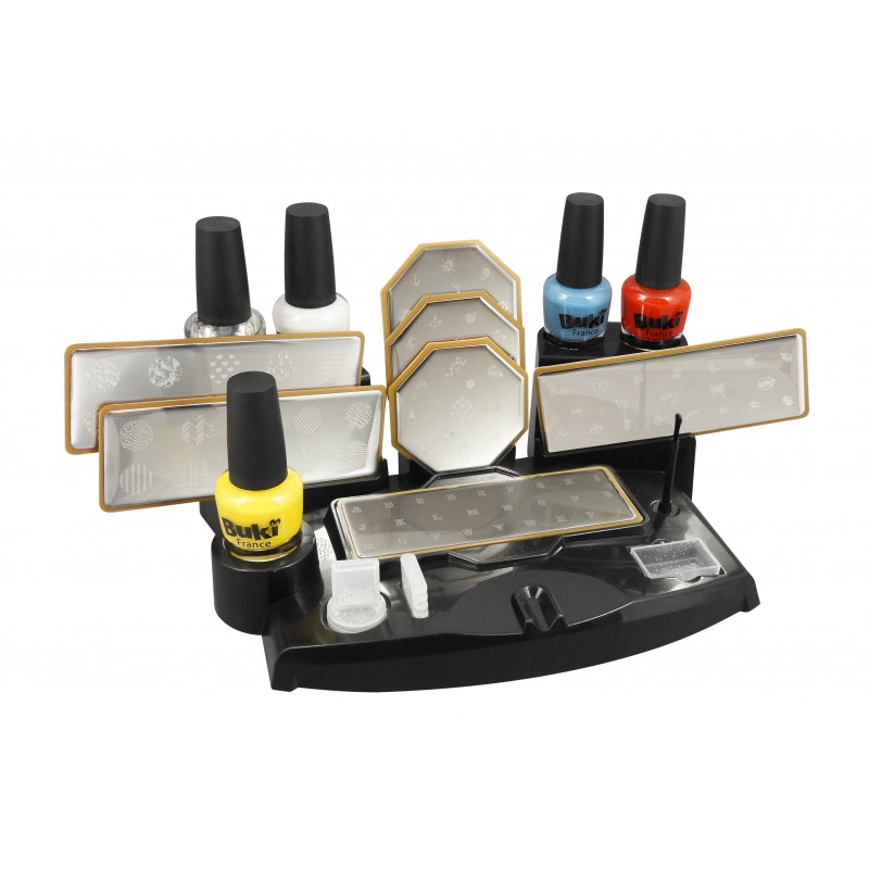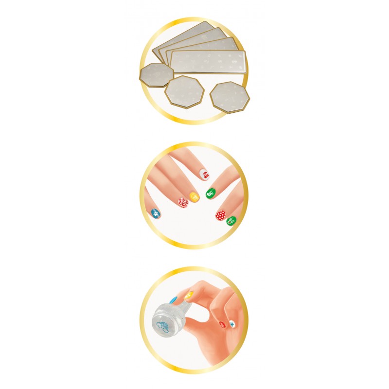Изберете шаблон, добавете капка лак за нокти, вземете дизайна от печата и го натиснете върху нокътя си;